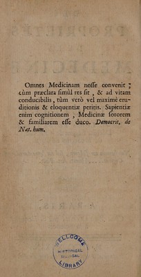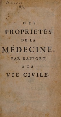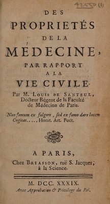 Credit: Des proprietés de la médecine, par rapport a la vie civile / [Louis de Santeul]. Source: Wellcome Collection.