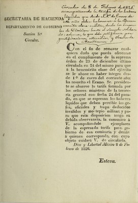 Circular / Secretaria de Hacienda. Departamento de Gobierno. Seccion 3.a.