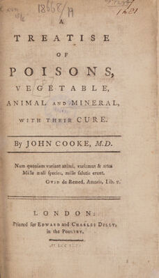 Credit: A treatise of poisons, vegetable, animal and mineral, with their cure. / By John Cooke, M.D. Source: Wellcome Collection.