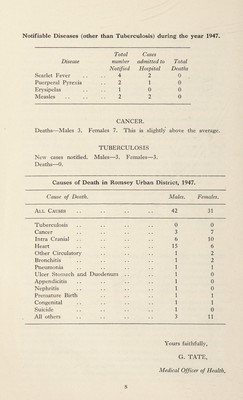 Credit: [Report 1947] / Medical Officer of Health, Romsey U.D.C. Source: Wellcome Collection.