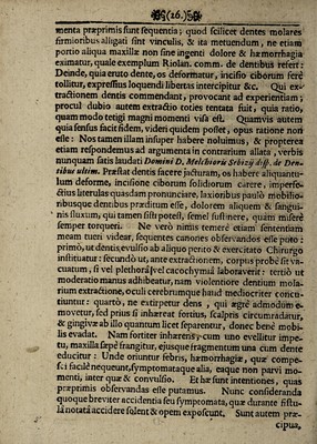![Aqua inter cutem laborantibus, exorta w corpore fiflulanon facite fanantur. ' 5*. . Generare in ulceribus carnem, cirrifa confoti dare & pus gene- rarerfunt aci tones, non artis,fed Natura. ... m 6. Catius ofiis fraSli eSl opus Natura. rrr Nobiltffimo at^ Pracellenti fsomino ] OH ANNI CASPARO Amico dtkcio f Fiftulofo in gena fua ulcere ad cicatricem fir¬ mam feliciter perduco De fiftula genae terminati ad dentem cariofum Solenniter Difputanti. VTt adium> foedant e malam fiftula, Et fiftula minante tot difcnmua. Non defitt folertiam laceffere. Donec cicatrix fueturetrudefeere Non ampliusJibi male eftet confcia : Sic Te, latebra jam remota fiftula, Metu fo lutum fufc i tat mens candida9 Ut audeas in publicum proponere, * Curationis dogma, quod Prolufio Hac continet, nitens tueri id fortiter. Utro%gratularis Tibi ergo nomine9 Utrofogratulor Parenti nomine. Erit Parens in arte felici(fimm9 Prolufionis aftimator optimus. IUum Tibi precor diu fuperflitem. Marcus Mappus* D. & P.P. * Difputationis Przfes, f rtt i $,](https://iiif.wellcomecollection.org/image/b30764531_0001_0028.jp2/full/800%2C/0/default.jpg)