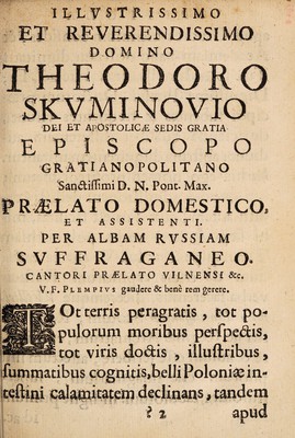 Vopisci Fortunati Plempii, Amstelredamensis artium & medicinae doctoris ... De affectibus capillorum et unguium tractatus. : Apospasmation libri sui de particularibus externis corporis humani affectibus. Ad illustrissimum & reverendissimum virum D. Theodorum Skuminovium.