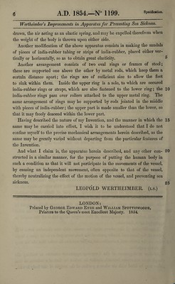 Credit: Specification of Leopold Wertheimber : apparatus for preventing sea sickness. Source: Wellcome Collection.