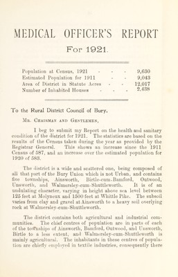 [Report 1921] / Medical Officer of Health, Bury (Union) R.D.C.