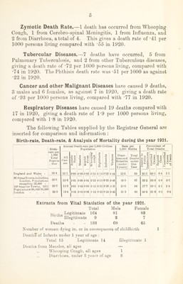 Credit: [Report 1921] / Medical Officer of Health, Bury (Union) R.D.C. Source: Wellcome Collection.