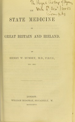 Credit: On state medicine in Great Britain and Ireland / by Henry W. Rumsey. Source: Wellcome Collection.