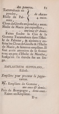 Credit: La pharmacopée des pauvres, accompagnée d'observations sur chaque formule par le docteur W** membre du Collège Royal des Médecins de Londres [i.e. William Lewis, M.B., F.R.S.] Avec des notes sur l'application des mêmes remedes [by A.C. Lorry?]. Source: Wellcome Collection.
