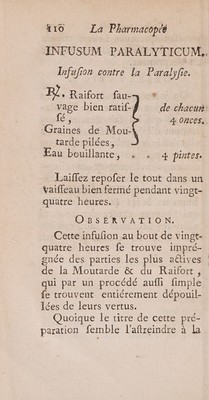 Credit: La pharmacopée des pauvres, accompagnée d'observations sur chaque formule par le docteur W** membre du Collège Royal des Médecins de Londres [i.e. William Lewis, M.B., F.R.S.] Avec des notes sur l'application des mêmes remedes [by A.C. Lorry?]. Source: Wellcome Collection.