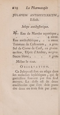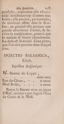 Credit: La pharmacopée des pauvres, accompagnée d'observations sur chaque formule par le docteur W** membre du Collège Royal des Médecins de Londres [i.e. William Lewis, M.B., F.R.S.] Avec des notes sur l'application des mêmes remedes [by A.C. Lorry?]. Source: Wellcome Collection.