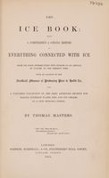 The ice book : being a compendious and concise history of everything connected with ice, from its first introduction into Europe as an article of luxury to the present time; with an account of the artificial manner of producing pure & solid ice. And a valuable collection of the most approved recipes for making superior water ices and ice creams at a few minutes' notice / by Thomas Masters. Public Domain Mark. Source: Wellcome Collection.