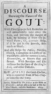 M0016720EA: Portrait of William Atkins (fl.1694) / M0016720EB: Atkins: The nature of gout, 1694: title page