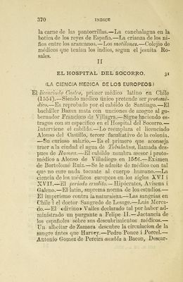 Los médicos de antaño en el reino de Chile : la ciencia, la caridad, la beneficencia, la hijiene, los hospitales, los asilos, las maravillas i las barbaridades de nuestros mayores en materia de medicos i de medicina; reseña histórica i crítica que comprende desde la fundación del Hospital del Socorro, 1556, hasta el establecimiento del Tribunal del Protomedicato en 27 de abril de 1830.