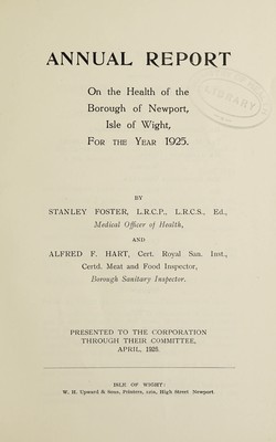 Credit: [Report 1925] / Medical Officer of Health, Newport (Isle of Wight) Borough. Source: Wellcome Collection.