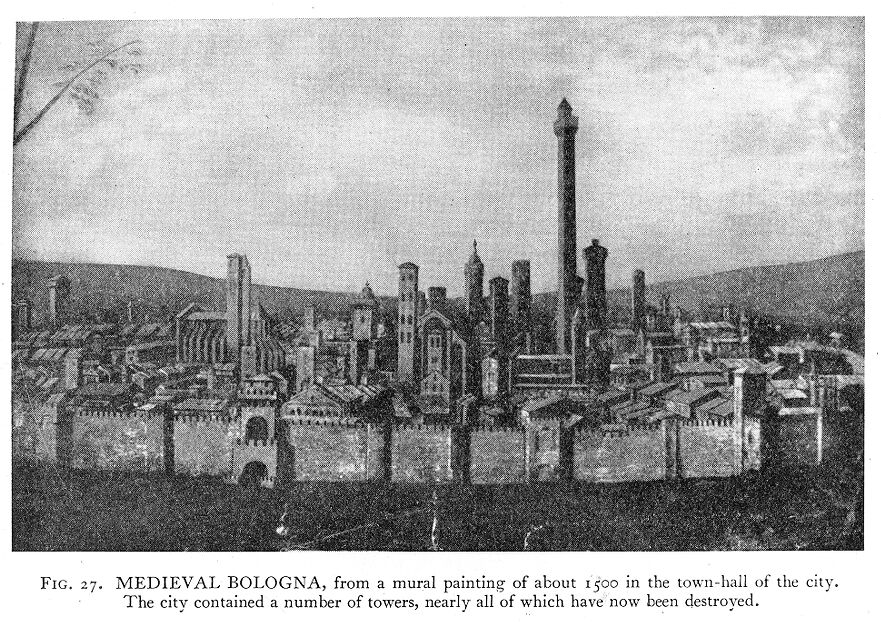 Credit: M0015485: Medieval Bologna, from a mural, c.1500, in the town-hall of the city. Source: Wellcome Collection.