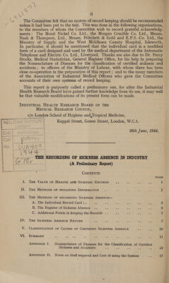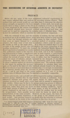 The recording of sickness absence in industry : (a preliminary report) / by a Sub-Committee of the Industrial Health Research Board.