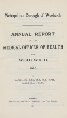 Credit: [Report of the Medical Officer of Health for Woolwich]. Source: Wellcome Collection.