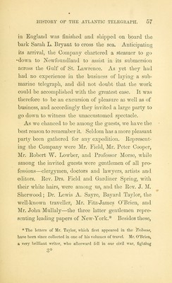 History of the Atlantic telegraph : to the return of the expedition of 1865 / by Henry M. Field.