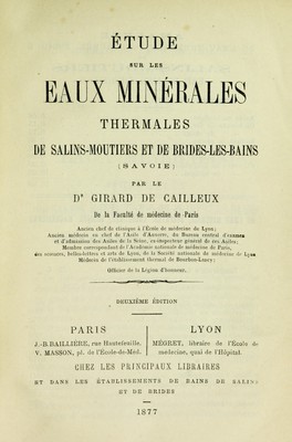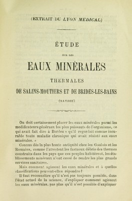 Credit: Etudes sur les eaux minérales, thermales de Salins-Moutiers et de Brides-Les-Bains (Savoie). Source: Wellcome Collection.