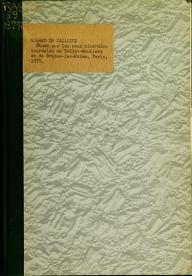 Credit: Etudes sur les eaux minérales, thermales de Salins-Moutiers et de Brides-Les-Bains (Savoie). Source: Wellcome Collection.