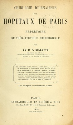 Chirurgie journalière des hopitaux de Paris : répertoire de thérapeutique chirurgicale / par P. Gillette.