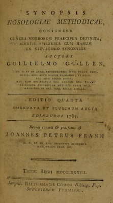Credit: Synopsis nosologiae methodicae, continens genera morborum praecipua definita, additis speciebus cum harum ex Sauvagesio synonimis ... / [William Cullen]. Source: Wellcome Collection.