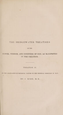On the adaptation of external nature to the physical condition of man: principally with reference to the supply of his wants and the exercise of his intellectual faculties / By John Kidd.