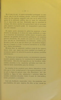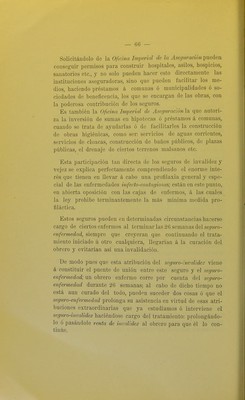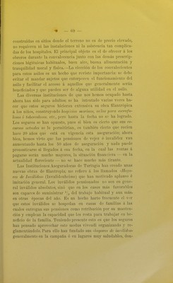 ![de hau hospedado muchos de sus inválidos, ocupándolos al mismo tiempo en los tfabajos más vaj'iados de agricultura, horticultura, jardinería, cría de aves y demás animales domés- ticos para con esto contribuir ó proveer al sostenimiento de estos «hogares». Los obreros que ingresan en estos «hogares> renuncian á sus rentas en beneficio de los seguros y tienen que rendir un tra- bajo proporcional á la capacidad que les queda.—Estos «hoga- res» son muy apreciados por los inválidos y el número poco numeroso de puestos disponibles está siempre corai)]eto. Gene- ralmente buscan admisión en estos «hogares» aquellos inválidos que no tienen familia ó parientes cercanos. Nos vamos á ocupar ahora del procedimiento á seguirse pa- ra que el asegurado consiga y perciba su renta. Tratándose de las pensiones de vejez, necesita el obrero probar que ha cumplido 70 años; puede hacer esto con un certificado de nacimiento ó de bautismo, que consiguen gratis en las oficicinas del Estado ó en las curias parroquiales. Junto con esto debe presentar en debida forma las tarjetas-recibos de que hablamos anteriormente, compi-obando los años que ha es- tado asegurado y las contribuciones hebdomadarias pagadas que -deben ser por lo menos 1200, es decir 25 años calculando so- bre el año de los seguros que consta de 47 semanas. El anciano que desea percibir su pensión de veje^ no tiene más que pre- sentar estos dos comprobantes á las autoridades comunales ú oficinas dependientes de los seguros; estando estos papeles en perfecto orden, le entregan inmediatamente las rentas que le correspondan y las seguirá recibiendo mensualmente por medio del correo de la localidad, previo recibo. Los trámites para conseguir la pensión de invalidez son algo más complicados. El interesado se dirige personalmente á los magistrados de la comuna ó lo hace por intermedio de la «Caja de Enfermos» á que pertenezca. Estos le entregan un formulario que él llenará; habitualmente se procede así; las autoridades le hacen una serie de preguntas que el interesa- do contestará; se anotan las respuestas, se le leen y él deberá firmarlas enseguida. Estas preguntas se refieren al nombre,](https://iiif.wellcomecollection.org/image/b21508173_0072.jp2/full/800%2C/0/default.jpg)