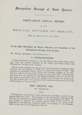 [Report of the Medical Officer of Health for St. Pancras, London, Borough of].