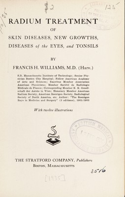 Radium treatment of skin diseases, new growths, diseases of the eyes, and tonsils / by Francis H. Williams.