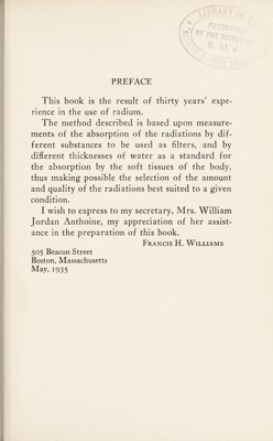 Credit: Radium treatment of skin diseases, new growths, diseases of the eyes, and tonsils / by Francis H. Williams. Source: Wellcome Collection.