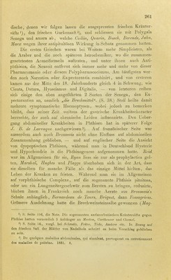 ![C3ij '^f SÜ) — '™ zweiten machte er eine Blutung aus einer Caverne stillstehen, und im dritten Falle eine llaemoptoe bei einem anämischen tuberculösen Mädchen. Leihlinger, Baumgärtner und Schednger be- dienten sich des Mittels niit Erfolg. Man kann zu erwähntem Zwecke wohl 3j liquor auf 3^] Wasser anwenden. Die grösste Concurrenz macht unserem Mittel noch der Alaun, der in Inhalation äusserlich und in der Alaun-Molke innerlich unter gleichen Veihältnissen angewendet wurde. Wenn wir nun hier auf der einen Seite eine gewisse therapeu- tische Analogie von balsamischen und harzigen Substanzen mit haemo- statischen getroffen haben, so bleibt theoretisch und practisch auf der anderen eine gewisse Affinität mit Tonicis unverkennbar, in jedem Falle bietet uns dieses Verhältniss die schicklichste Opportunität zum Ucber- gang zu letzteren, „die speciell ihre Indicationen hei den torpiden Pkihisenformen finden. Die tonische Behandlung torpider Lungenphthisen (S. 20{)) reicht weit über die speciell-medicamentöse Anwendung der tonischen Arznei- substanzen hinaus, denn sie hat sich in weitaus den meisten Fällen mit tonisirender Diätetik im ganzen Umfange des Wortes zu combiniren, nemlich in Betreff der Alimentation (S. 189), der Brust- und Lungen- gymnastik, der Luftumgebung und der Klimawahl (S. 150—163. S. 204. S. 216. S. 218-19—34. S. 198.). (Anschliessend an das, was wir über tonisirendes Klima und Klima-Zonen bereits vorgetragen haben, dürfen wir Pte^m Sajj^o's Er- fahrungen nicht übergehen, sei es auch nur der Analogie wegen und der Bestätigung anderweitiger Erfahrungen. Sie beziehen sich auf die Luft in den Pyrenäischen Gebirgen, deren ärztliche Bedeutung von Jahr zu Jahr zu wachsen scheint. Er kam zu den liauptre- sultatcn: 1) dass die Luft, welche man dort auf einer Höhe von 7—800 Metres unter einem mittleren atmosphärischen Druck von 0,700 Mm. athmet, specielle Eigenschaften besitzt; 2) dass diese Atmosphäre einen wohlthätigcn Einfluss auf die chronischen Affectionen der Respirations- Wege ausübt; 3) aus diesem Grunde wird sie ein sehr kräftiges Un- terstützungsmittel der Schwefelwässer jener Gegend. Man vergleiche hiemit, was wir über Höhen-Zonen und über Bergklima vorgetragen haben. — S. 151-2. 218.) Aus dem oben vorausgeschickten ergibt sich, dass, unter Modi- ficationen, sich so manches Curmittel in die tonisirende Behandlung übertragen lasse. Wir glauben von den Molkencuren her das auf-](https://iiif.wellcomecollection.org/image/b20398219_0276.jp2/full/800%2C/0/default.jpg)