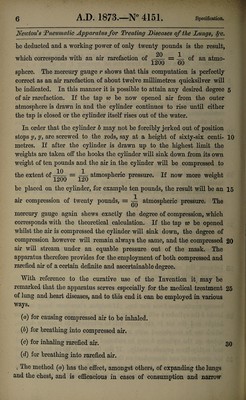 Specification of Alfred Vincent Newton : pneumatic apparatus for treating diseases of the lungs and heart.