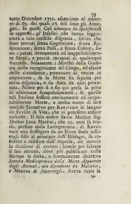 Credit: Raccolta di teorie, osservazioni, e regole per ben distinguere, e prontamente dissipare le asfissie o morti apparenti, dette anche morti repentine, o violente, prodotte da varie cause sì interne, che esterne / [Giovanni Targioni Tozzetti]. Source: Wellcome Collection.