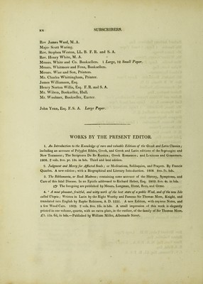 Typographical antiquities; or the history of printing in England, Scotland, and Ireland: containing memoirs of our ancient printers, and a register of the books printed by them / Begun by the late Joseph Ames, F.R. & A.SS. Considerably augmented by William Herbert, of Cheshunt, Herts; And now greatly enlarged, with copious notes, and illustrated with appropriate engravings; comprehending the history of English literature, and view of the progress of the art of engraving, in Great Britain; by the Rev. Thomas Frognall Dibdin.