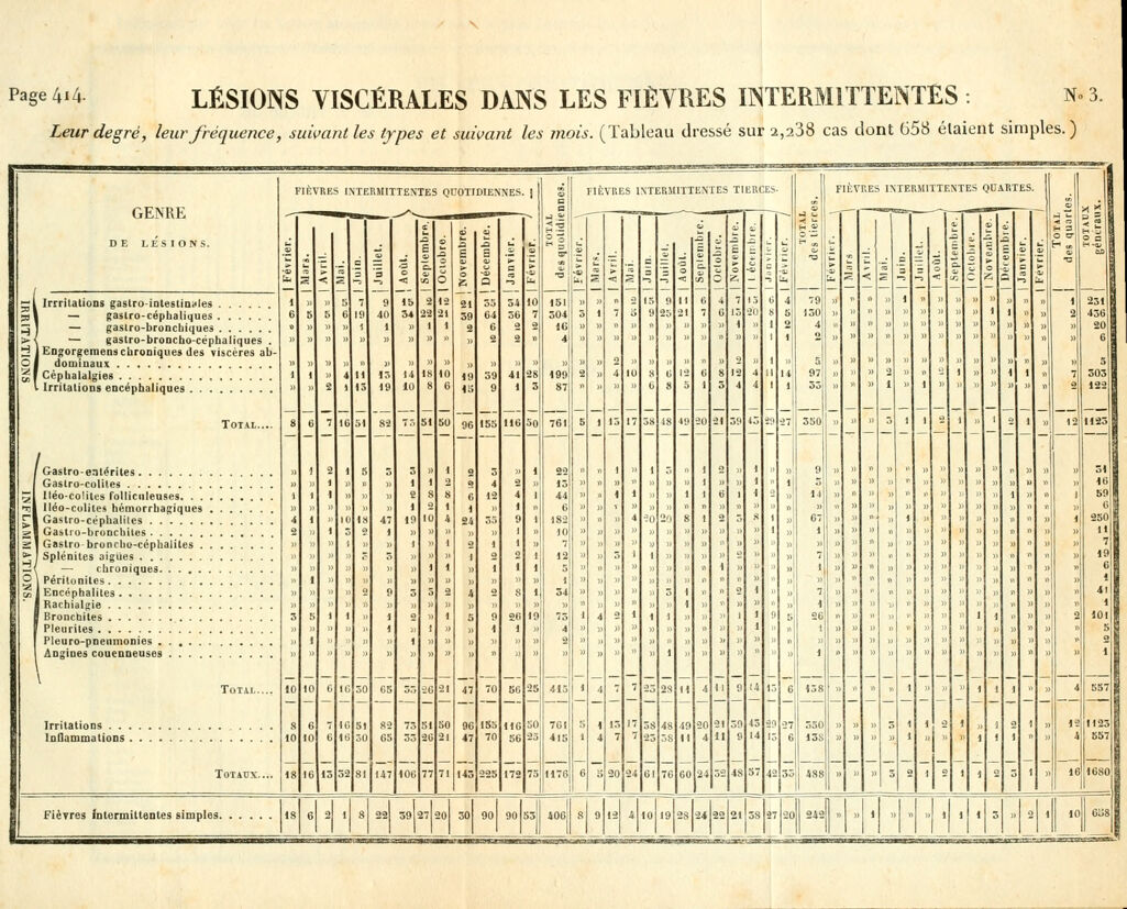 Credit: Traité des fièvres, ou, Irritations cérébrospinales intermittentes d'après des observations recueillies France, en corse et en Afrique / par F.C. Maillot. Source: Wellcome Collection.