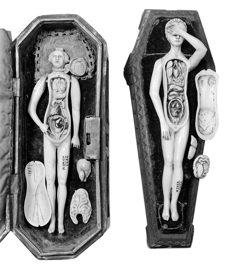 M0018657EC: Anatomical figures in ivory; two pregnant females. Attribution 4.0 International (CC BY 4.0). Source: Wellcome Collection.
