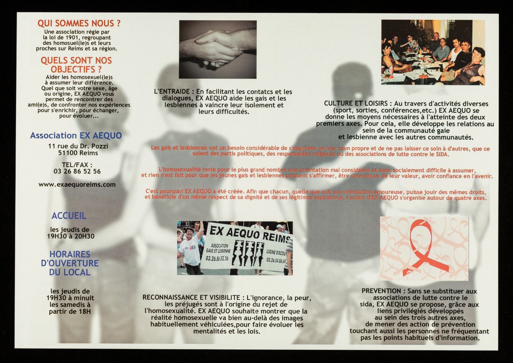 Ex Aequo : si vous êtes gais, lesbiennes, bi, trans ou proches de ces sensibilités, rejoignez-nous! / Ex aequo.