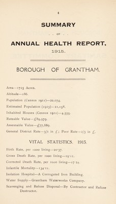 Credit: [Report 1915] / Medical Officer of Health, Grantham Borough. Source: Wellcome Collection.