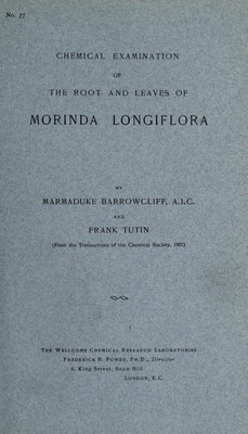 Chemical examination of the root and leaves of Morinda longiflora / by Marmaduke Barrowcliff and Frank Tutin.