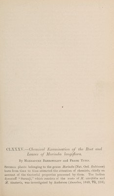 Credit: Chemical examination of the root and leaves of Morinda longiflora / by Marmaduke Barrowcliff and Frank Tutin. Source: Wellcome Collection.