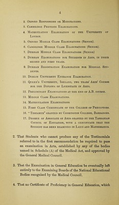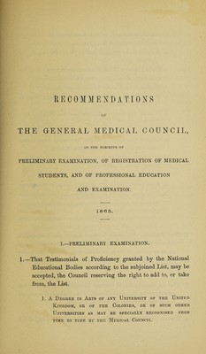 Credit: Recommendations of the General Medical Council on the subjects of preliminary examination, of registration of medical students, and of professional education and examination / General Medical Council. Source: Wellcome Collection.