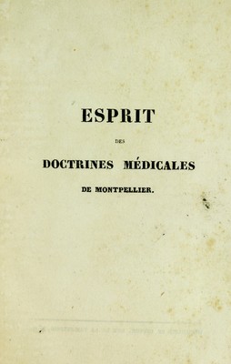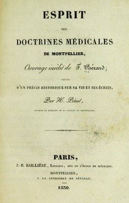 Credit: Esprit des doctrines médicales de Montpellier, ouvrage inédit de F. Bérard : précédé d'un précis historique sur sa vie et ses écrits / par H. Pétiot. Source: Wellcome Collection.