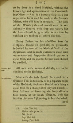 Credit: Instructions to regimental surgeons, for regulating the concerns of the sick, and of the hospital : with an appendix and index. Source: Wellcome Collection.