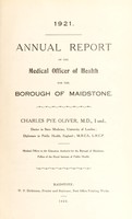 [Report 1921] / Medical Officer of Health, Maidstone U.D.C. / Borough. Attribution 4.0 International (CC BY 4.0). Source: Wellcome Collection.