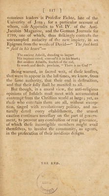 The rise and dissolution of the infidel societies in this metropolis : including, the origin of modern deism and atheism; the genius and conduct of those associations; their lecture-rooms, field-meetings, and deputations; from the publication of Paine's Age of reason till the present period / [William Hamilton Reid].