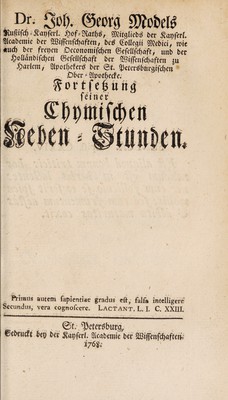Chymische Nebenstunden. [-Fortsetzung] / [Johann Georg Model].