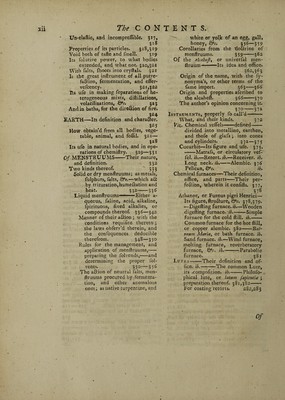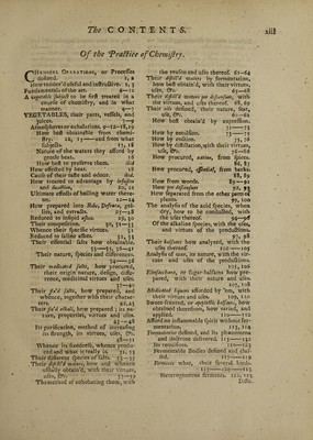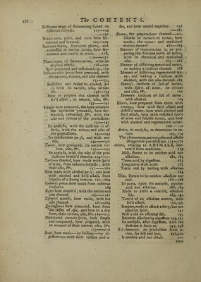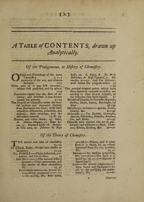 ![A Table ^CONTENTS, drawn up Analytically. Of the Prolegomena, or Hiftory of Chemiftry. ORigin and Etymology of the name Chemiftry. p. i—5 Antiquity of the art, and whence deduced. 5—7 What part of it was firft invented ; where firft pra&ifed, and by whom. Particular inquiry into the ttra of Al¬ chemy ; and whether it was known among the antients. 9—15 The Progrefs of Chemiftry under the feve- ral authors and improvers thereof, from Zozimusto our time; with their refpe&ive difcovcries, principles, and dogma’s; their writings, and the chara&ers thereof. 13, 0” feq. Zozimus, and other Greeks, 14* Geber, ib. Albertus Magnus, 15. Roger Ba¬ con, 15. Raymund Lully, 18. Arnoldus de Villa nova, 19. Johannes dt Rups Scijfa, 20. G. Ripley, ib. Jo. & If. Hollandus, ib. Bajil Valentine, 21. Pa~ racelfnst 22—30. And Van Helmont; with whom the progrefs ended. 30 . . . I6 The principal chemical authors which have fincc appear’d, reduced to clafles, ac¬ cording to their feveral fubjetts, or the branches they have treated. 3 7 Writers of Courfes or Vvoceffes-Beguinus, Crollius, Glafer, Lemery, Barchaufen, La Mort. 38—39 Metallurgic writers-—•—Agricola, Ercher, Glauber, &c. 40—42 Alchemifts-Van Zuchten, Centivoglio, Agricola, Philalethes, Pantaleo, Artephius, Bee, and Kelley. 42—45 Chemifts who applied the art to phi- lofophy and medicine;—Boyle, Tache- nius, Bohnius, Homberg, &c. 46—50 Of the Theory of Chemiftry. THE nature and idea of chemiftry, 5J» Its jDhjCCf, ISottp, divided into clafles or kingdoms. 52,53. Viz. FOSSILS-Their definition, pro¬ perties, and fub-divifion. 54 Into Metals-The natural hiftory thereof-Their generation, ana the reafon of tneir chara&ers, &C. 55, 56 Particularly Gold-Its feveral dit- tinguifhmg properties-Its truth, purity, &c. how tried, 56—68-Where, and in what form it is found, 69, 70.— How feparated from the ore, purified, Qrr. jo,]!1 Mercury-Its fenfible properties, &c. 71—76-The form it is found in, 76, 77.-Manner of feparating it. 7 7 Bead-Its feveral properties- How found and feparatpd-Its ufe in the purifying the nobler metals, &c. 77—Si A Silver■](https://iiif.wellcomecollection.org/image/b30416796_0013.jp2/full/800%2C/0/default.jpg)