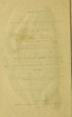 Remarks on patent vegetable medicated vapour baths, air-pump vapour baths, portable sudatory baths, sulphureous fumigation baths, and cold and tepid shower baths; Portobello, near St. George's Church, Sheffield : including extracts from medical and other authorities, and reports of cases of various diseases, relieved or cured.