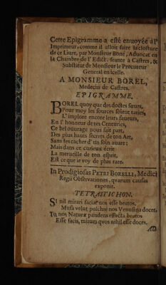 Petri Borelli, medici regii Castrensis, Historiarum et observationum medico-physicarum centuriæ IV : Quibus ipse quidem subjunxit Isaaci Cattieri ... Observationes medicinales raras secum communicatas ; Renatique Cartesii Vitam à se perscriptam. Nunc ... accedunt Joh. Rhodii Observationes ; Arnoldi Bootii De affectibus omissis tractatus ; & Petri Matthæi Rossii Consultationes & observationes selectæ.