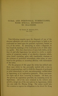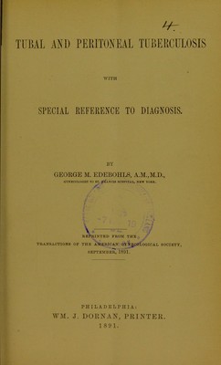 Tubal and peritoneal tuberculosis : with special reference to diagnosis / by George M. Edebohls.